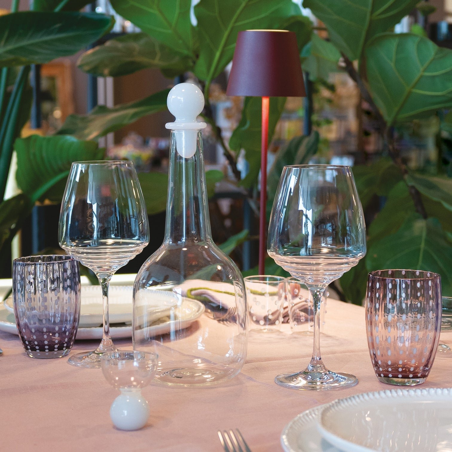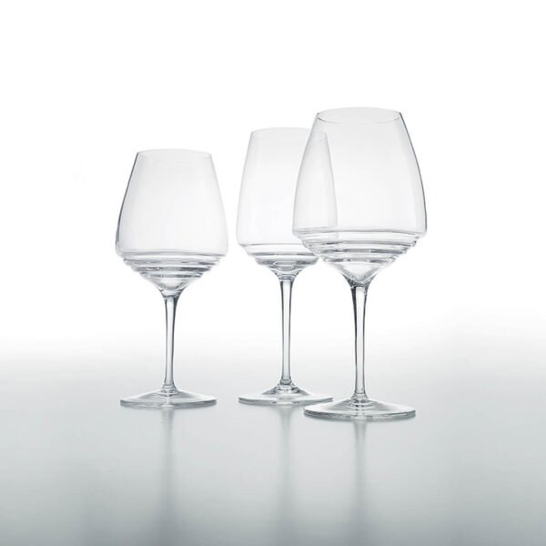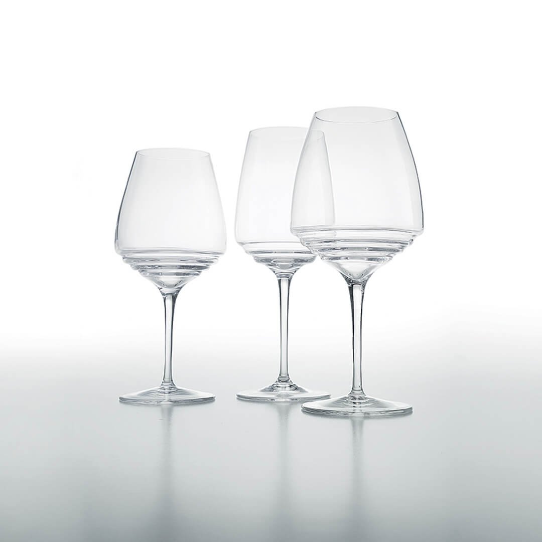 The Esperienze Red Wine Glass features an unusual spiral design at the bottom of the glass that improves the oxygenation of the wine. These Zafferano wine glasses are made from fine crystal glass.